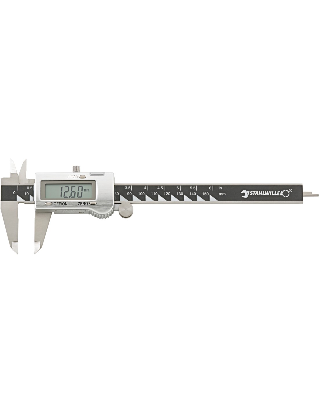 • con cubierta de la carcasa metálica y botones metálicos • con salida de datos (mini USB) • mecánica en versión inoxidable, templada • con y sin rodillo para el pulgar (incluido en el suministro, para el automontaje) • gran visualizador LCD de lectura clara, altura de cifra 9 mm • precisión de indicación 0,01 mm/ 0,0005" • las mordazas de medida están finamente rectificadas y lapeadas • botón de encendido/apagado • con medida de la profundidad • unidad de medida en mm o pulgadas, posición cero en cualquier posición • incluye 2 pilas de 3 V (tipo CR2032) • en caja de material sintético