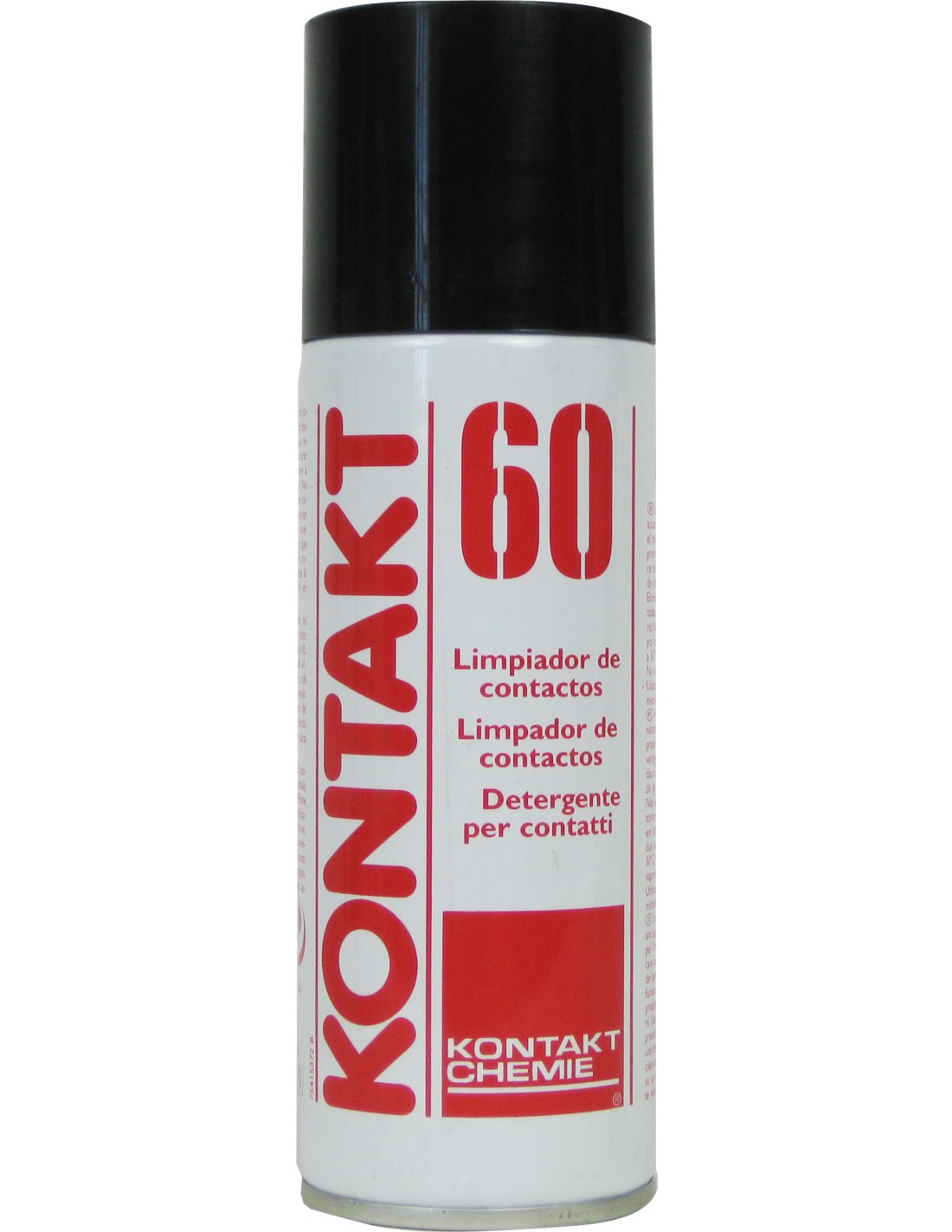 Desoxidación de contactos. Disuelve las capas de óxido, restaurando los contactos metálicos. Los contactos alcanzan unas condiciones óptimas cuando los residuos disueltos con KONTAKT 60 se eliminan mediante pulverización con KONTAKT WL , protegiéndolos a continuación con KONTAKT 61.