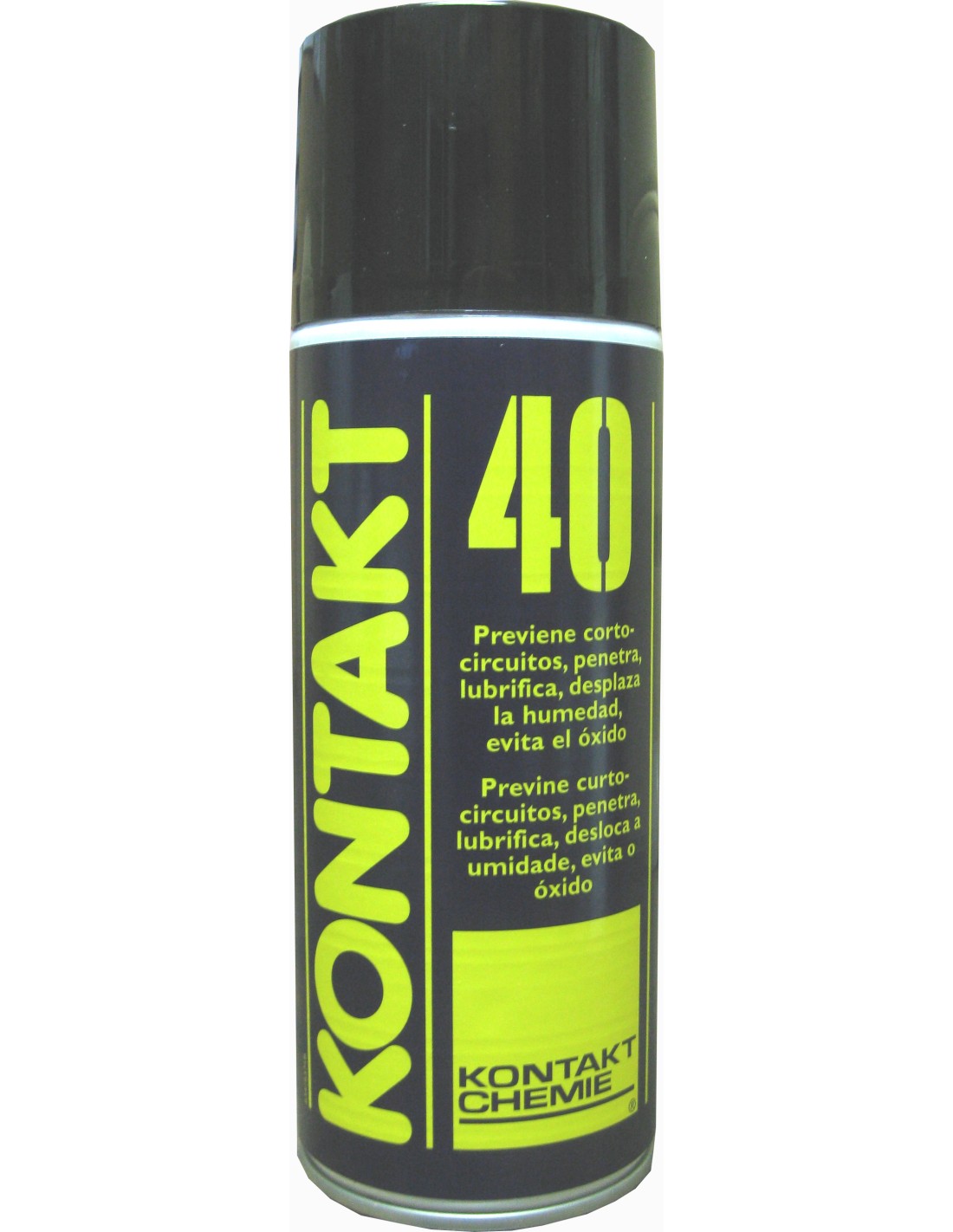 Spray de mantenimiento. Lubricante multiusos que previene los fallos eléctricos y electrónicos causados por la humedad, la condensación y la corrosión. Kontakt 40 es un aceite penetrante fiable, un lubricante, desplaza el agua e inhibe la corrosión. Restaura la baja resistencia de contactos y evita las fugas de corriente. Equipado con una válvula de 360º que facilita la aplicación en posición invertida.