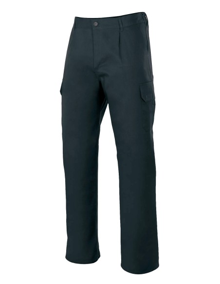 Cierre central con cremallera y botónCinturilla elásticaCostura trasera de seguridadPinzasSeis bolsillos:2 bolsillos franceses2 bolsillos de parche, con fuelle central, tapeta y velcro2 bolsillos traseros de fuelle, con tapeta y velcro