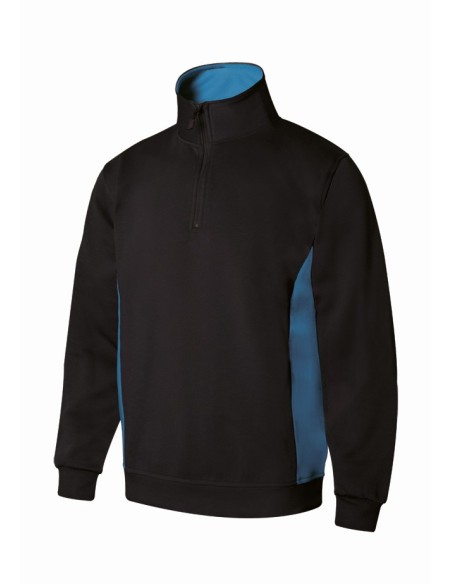 FELPA. 65% POLIÉSTER - 35% ALGODÓN 260 GSM SUDADERA BICOLOR CREMALLERA | Velilla Confección Industrial NEGRO/CELESTE (00/05) FELPA. 65% POLIÉSTER - 35% ALG
